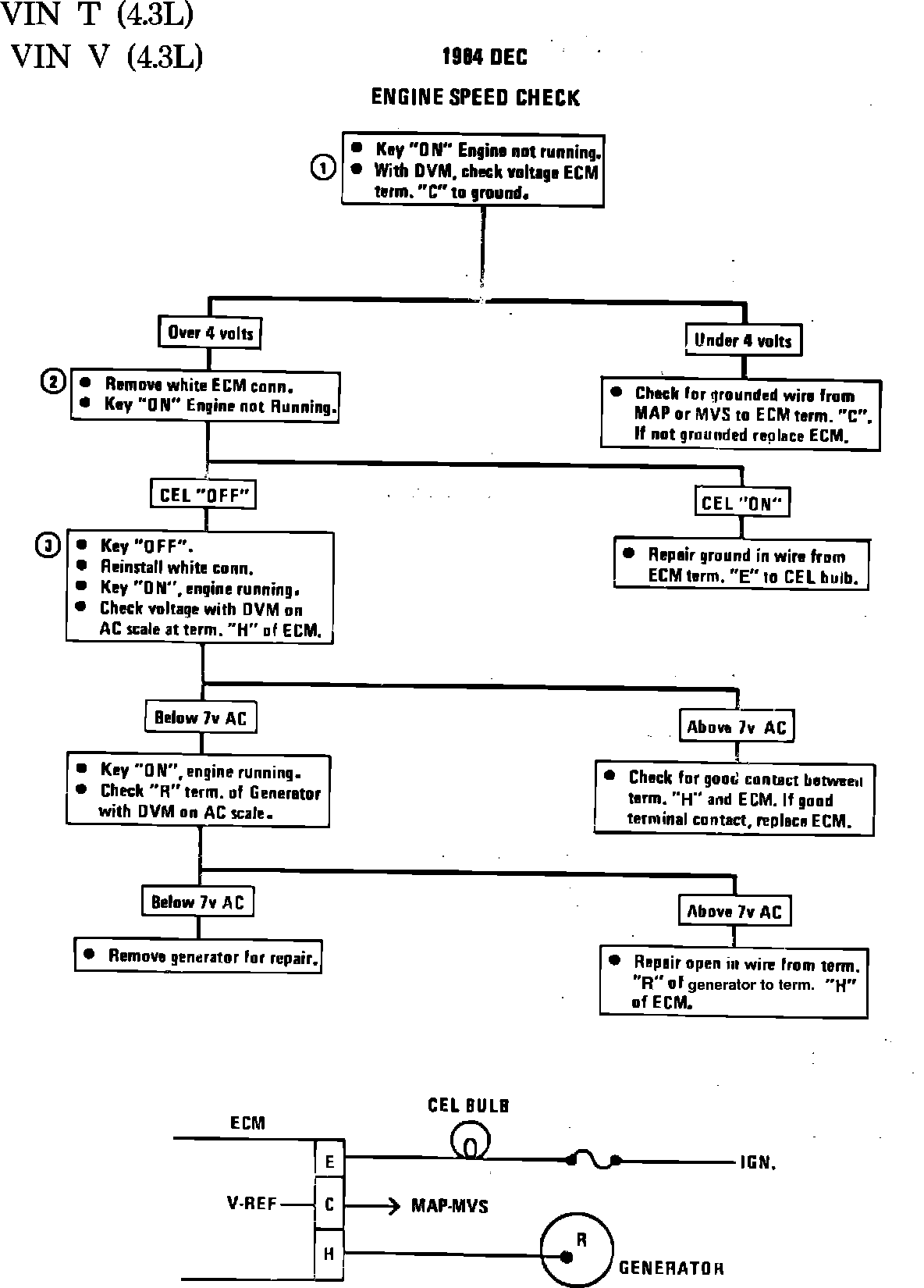 Fig. 008 - WIRING DIAGRAM for DEC Engine Speed Check. VIN T, VIN V: