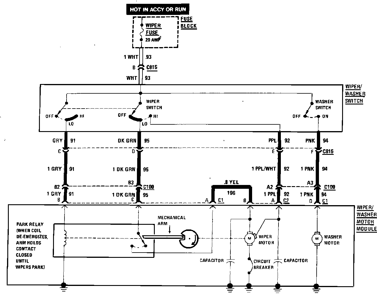 Wiper/Washer Wiring Circuit (Less Pulse):