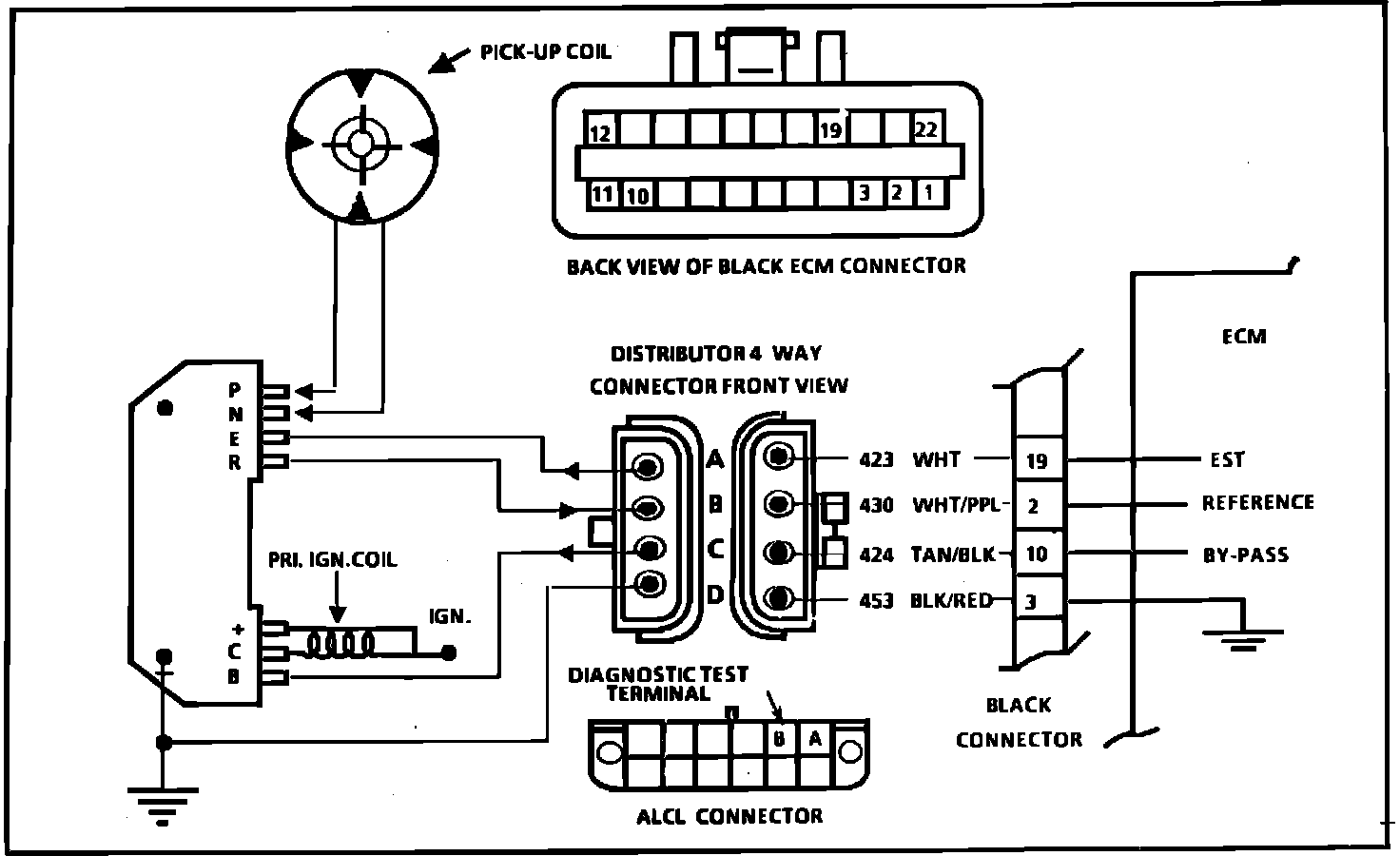 2. Checks for a normal EST ground path through the ignition module. An EST CKT 423 shorted to ground will also read less than 500 ohms; however, this will be checked later.