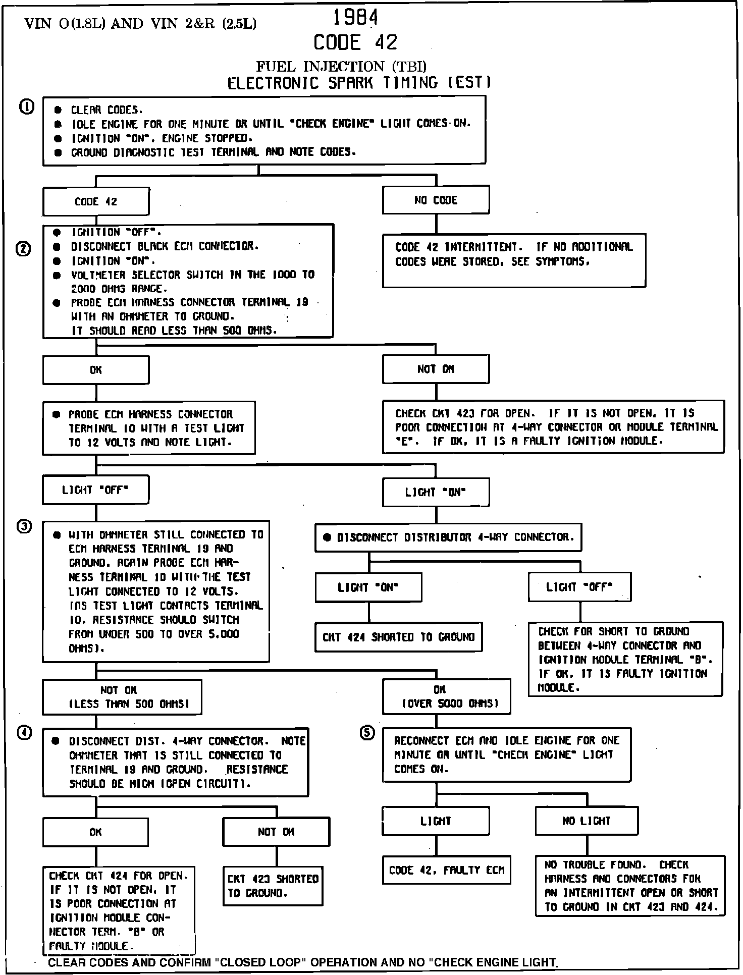 5. Confirms that Code 42 is a faulty ECM and not an intermittent in CKTs 423 or 424.
