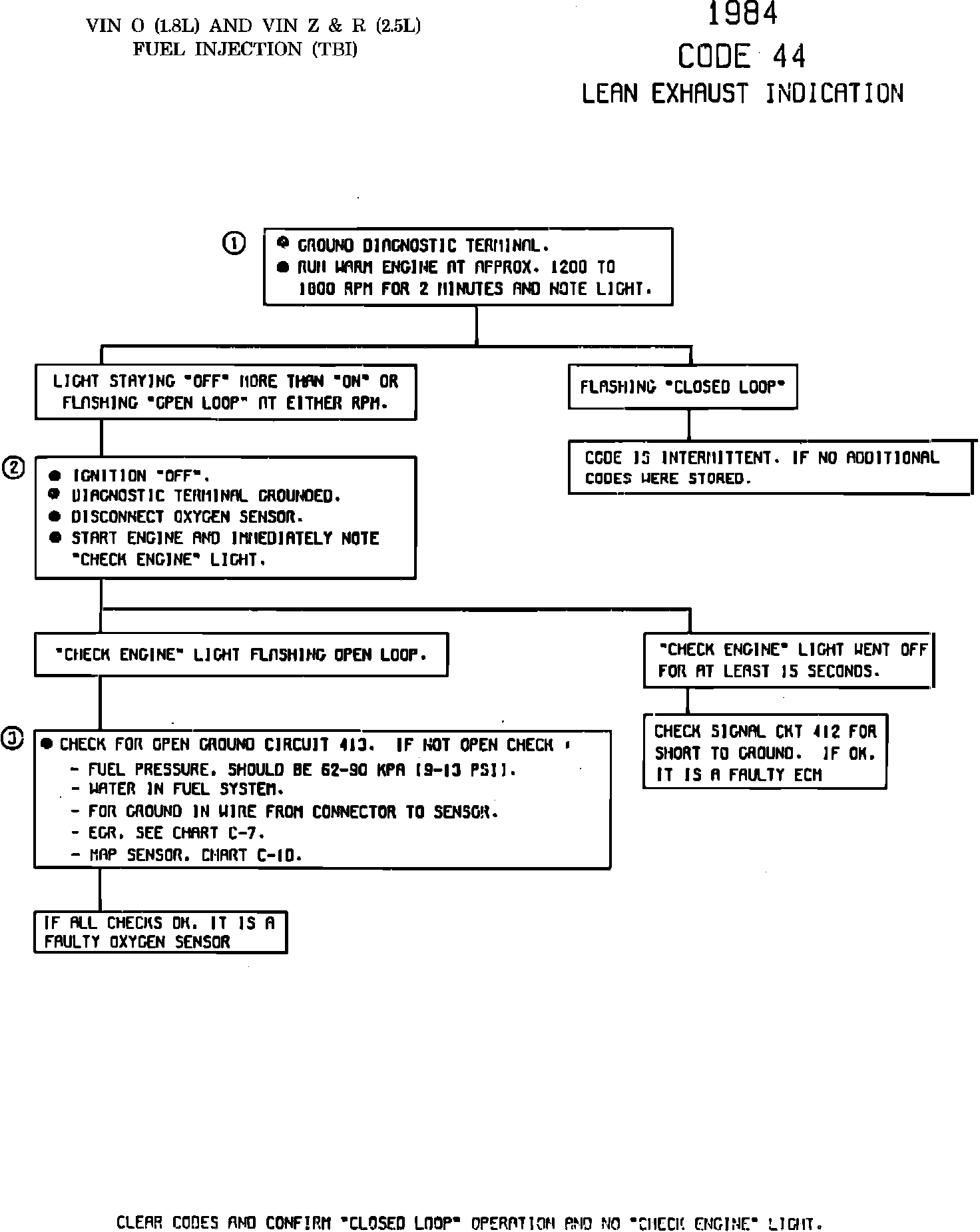 - If the above are OK, and the instructions at the top of the chart will still set at Code 44, or "SERVICE ENGINE SOON" light is "off" more than "on", or flashing "open loop", it is a faulty Oxygen Sensor.