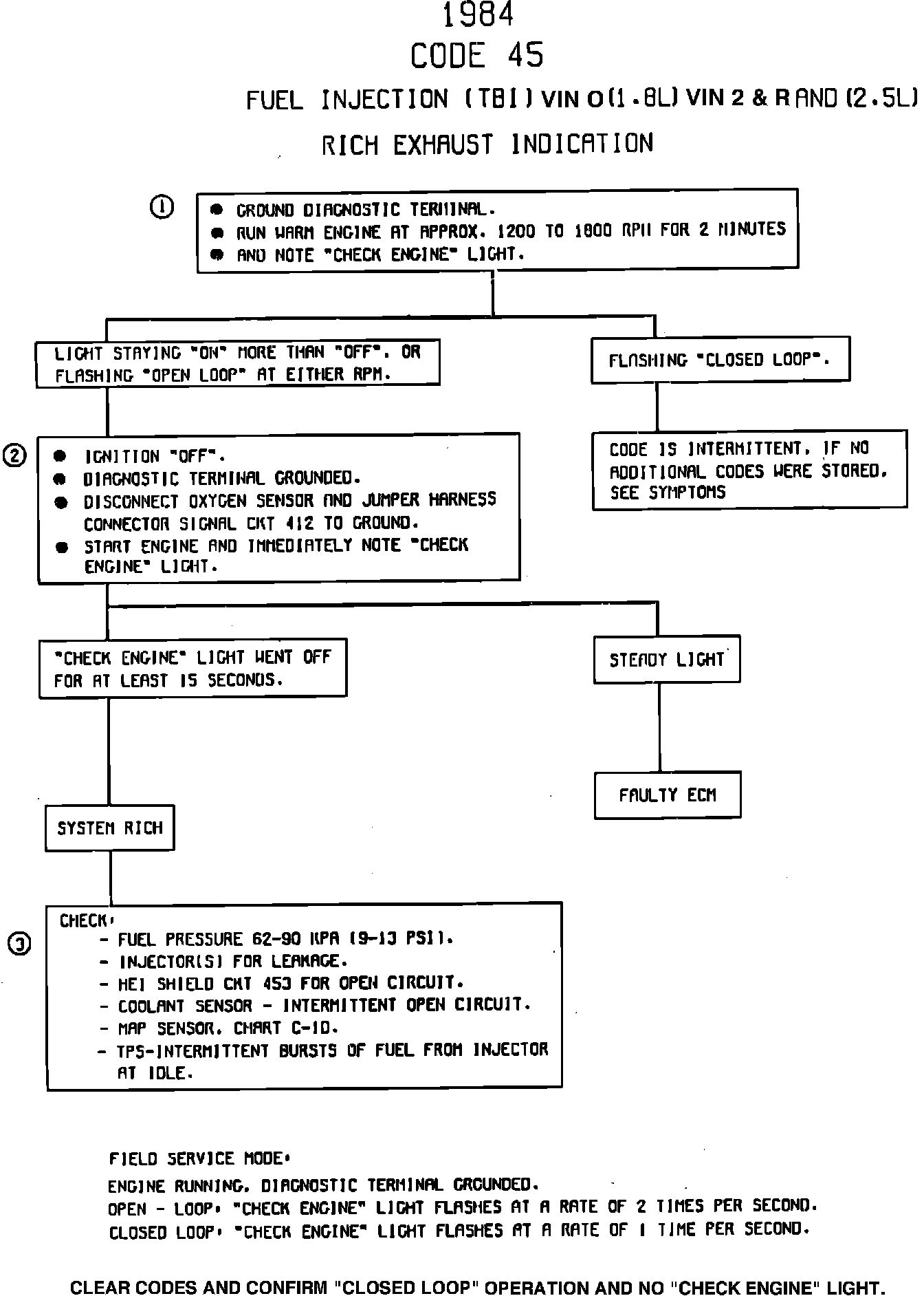 3. A Code 45 will not be caused by a faulty O2 sensor. Code 45 indicates a rich exhaust and diagnosis should begin with the items listed: