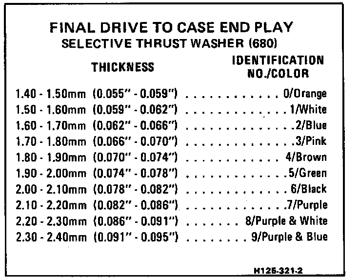 Final Drive Endplay Specifications: