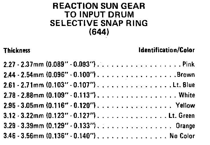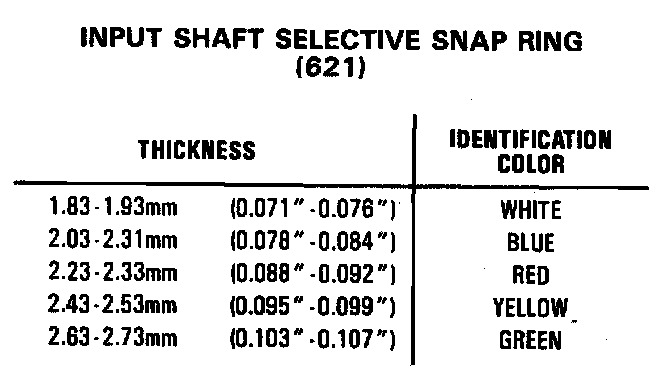 Input Shaft Snap Ring Specifications: