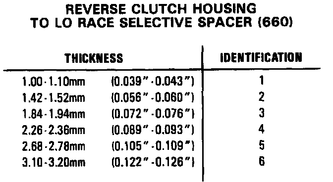 Reverse Clutch Specifications: