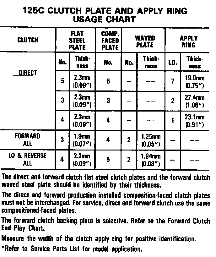 Clutch Plate Usage Chart: