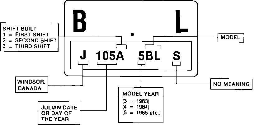 The THM 325-4L transmission uses serial numbers; and beginning 1985 model year, Julian dates have been added to the nameplate.