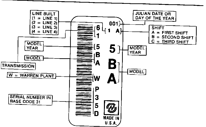 The THM 200C transmission uses serial numbers; and beginning 1985 model year, Julian dates have been added to the nameplate.