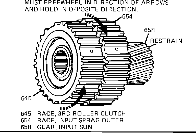 April 1, 1986 (Julian Date 091), new input sprag clutch assembly used in later 1986 and all 1987 applications. This change is also on all Service Replacement Transmission Assembly (SRTA) models effective May 1, 1986 (Julian Date 121). (Figure 1)