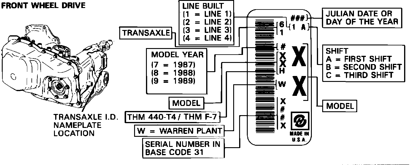 Figure 1 - THM 440-T4/THM F-7 Transaxle Identification Information: