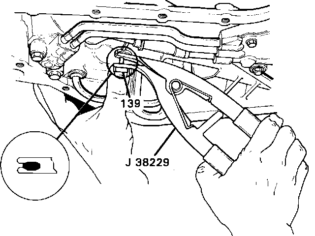 The 1-2 band stop (139) can be replaced while the transaxle is in the vehicle by removing the screws (60), transmission oil pan (59) and oil filter assembly (58) as listed in the Service Manual, then: