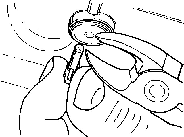 2. Use J 38229 1-2 band stop installation tool as shown in Figure 4 by first putting the 1-2 band stop into the tool then put the stop into the hole and while pushing on the base, squeeze the handle of the tool till its preset stop.