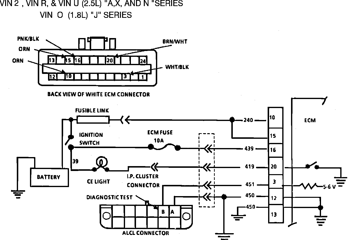 Fig. 011 - Wiring Diagram for Chart A-1 No "Service Engine Soon" Light VIN O, VIN 2, VIN R, VIN U: