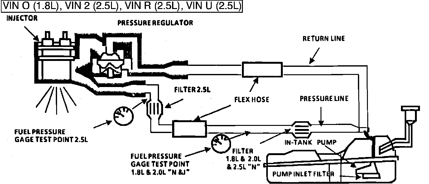 b. Restricted flow causing pressure drop - Normally, a vehicle with a fuel pressure of less than 62 kPa (9 psi) at idle will not be driveable.
