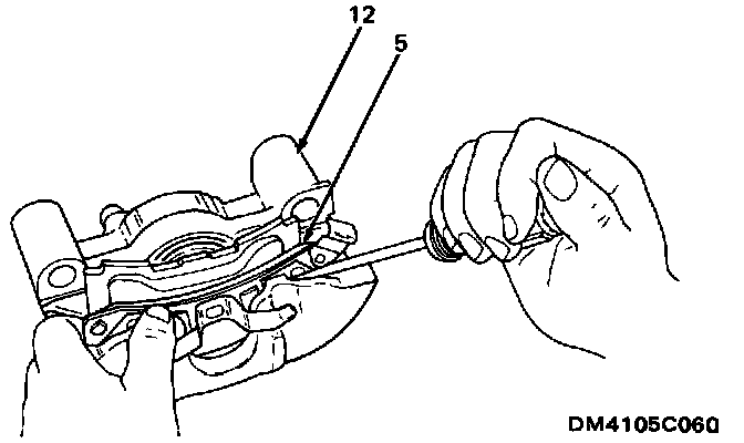 CAUTION: It is not necessary to disconnect the brake hose, however, use caution not to twist or kink hose.Removing Outboard Spring And Lining:
