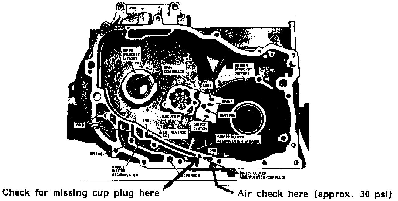 7. Check separator plate for blocked hole, and check for blown valve body gasket.