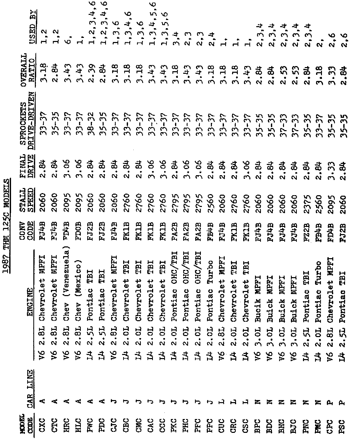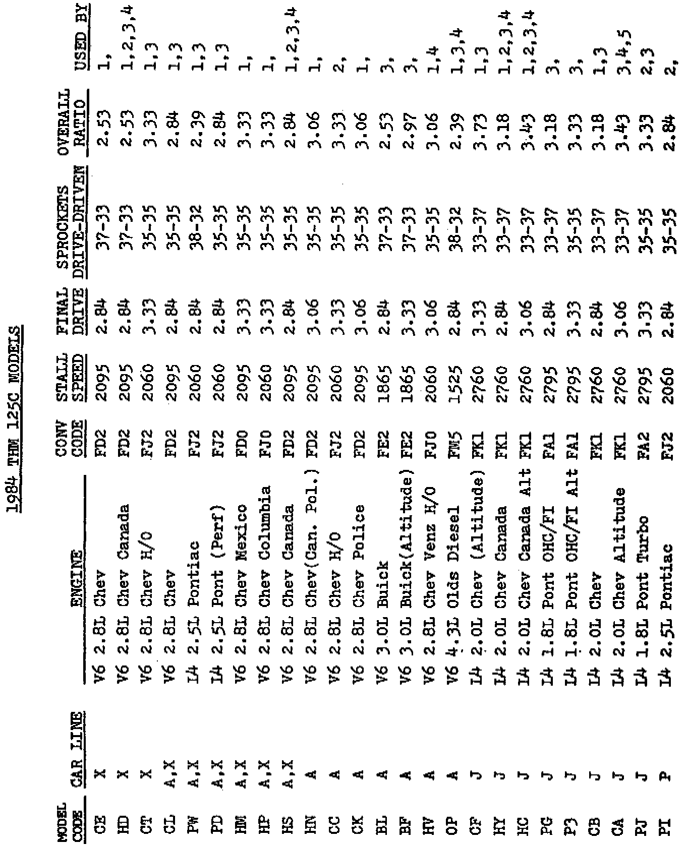 The following information may be helpful when interchanging parts and/or transmissions in vehicles equipped with a THM 125C.