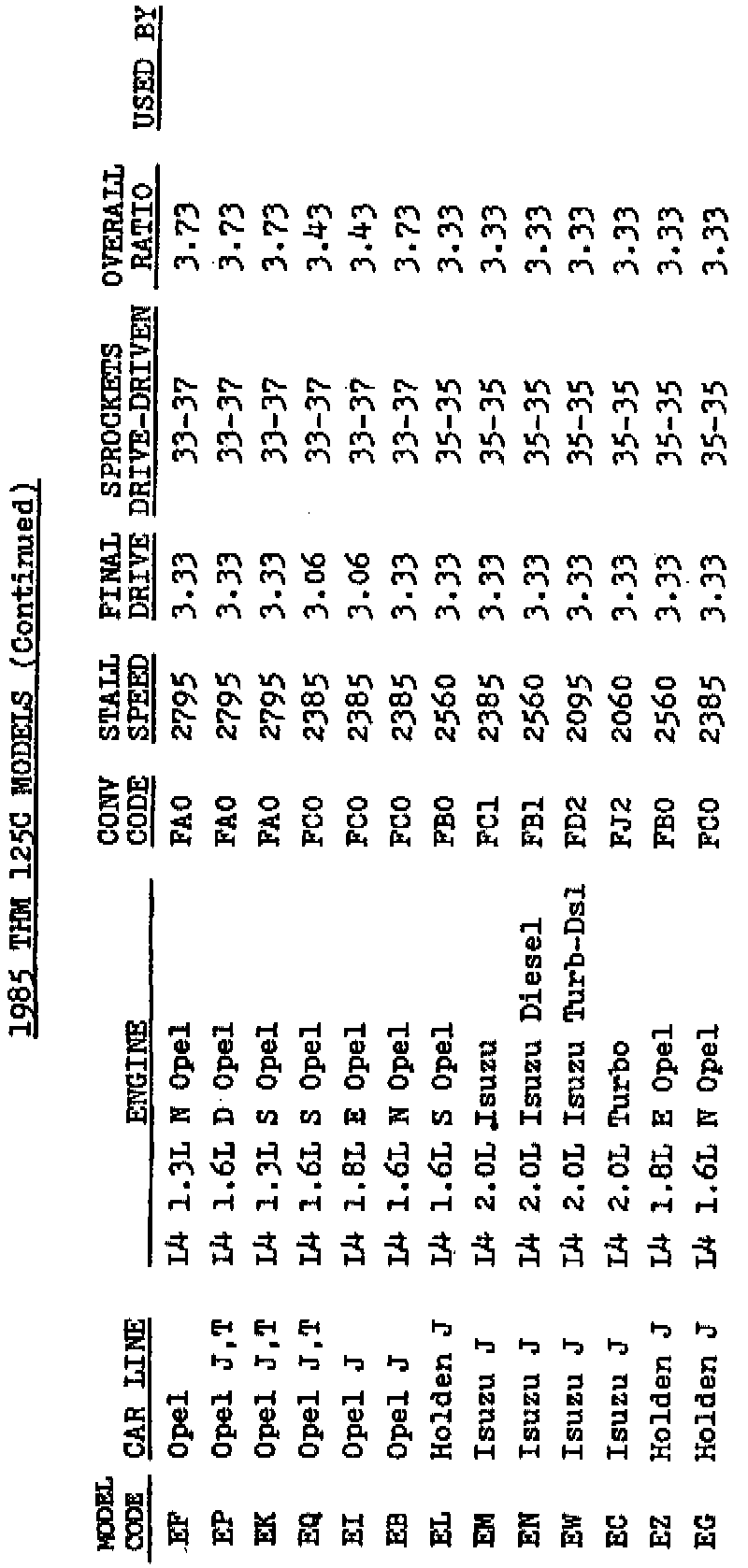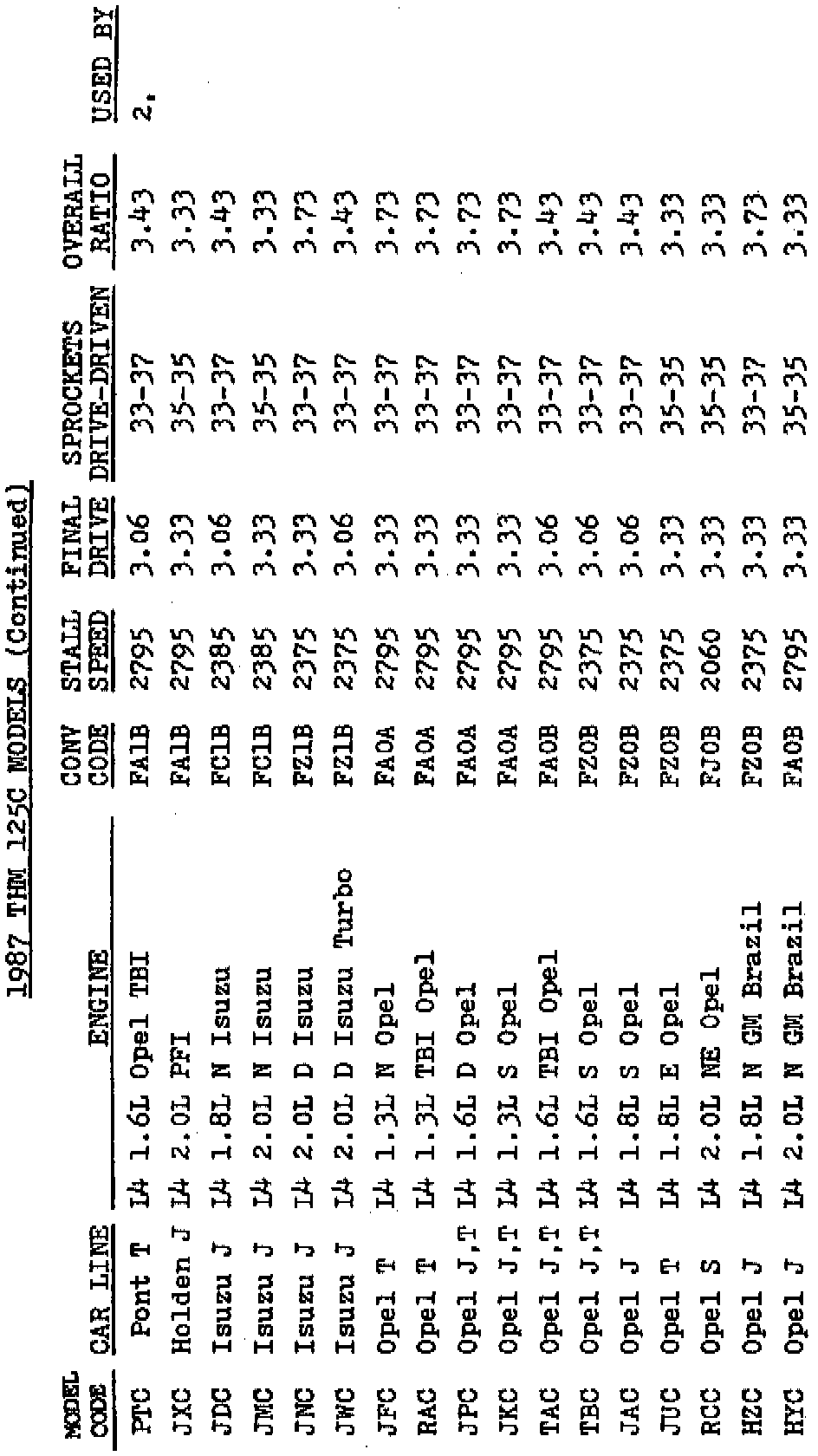 A/T - THM 125C Model Code Information