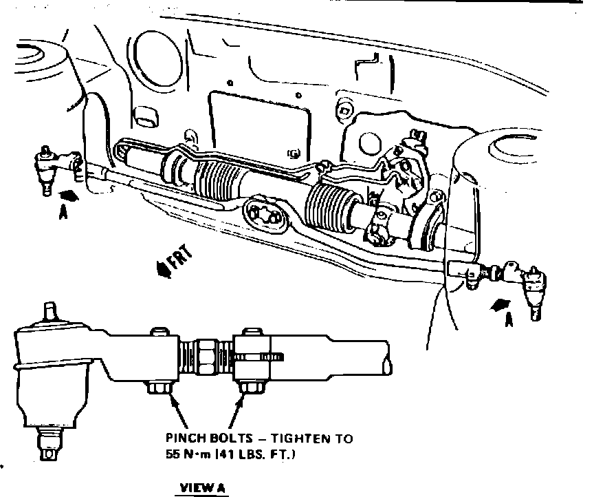 To eliminate the possibility of this occurring on vehicles involved, the inner and outer tie rod pinch bolts are to be tightened according to instructions in the Service Procedure Section of this bulletin.