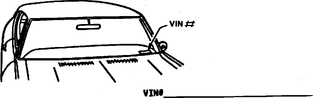 1. Write in the Vehicle Identification Number (VIN) of the car or cars in which you need the longer belt. The VIN is located on the left front top surface of the instrument panel and is visible from the outside of the car. Note the VIN below.