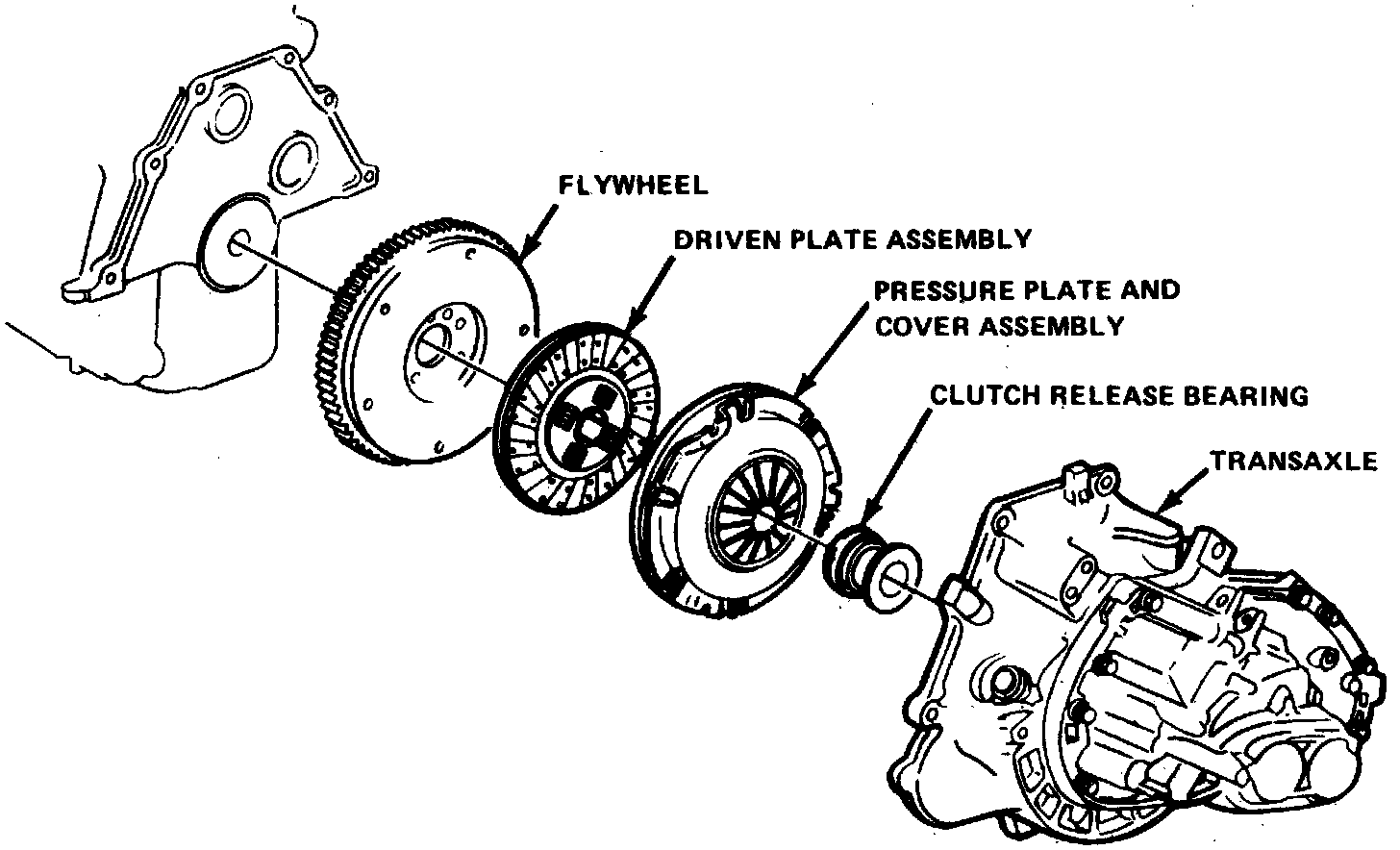 8. Clean pressure plate and flywheel mounting surfaces. Inspect bearing retainer outer surface of the transaxle.