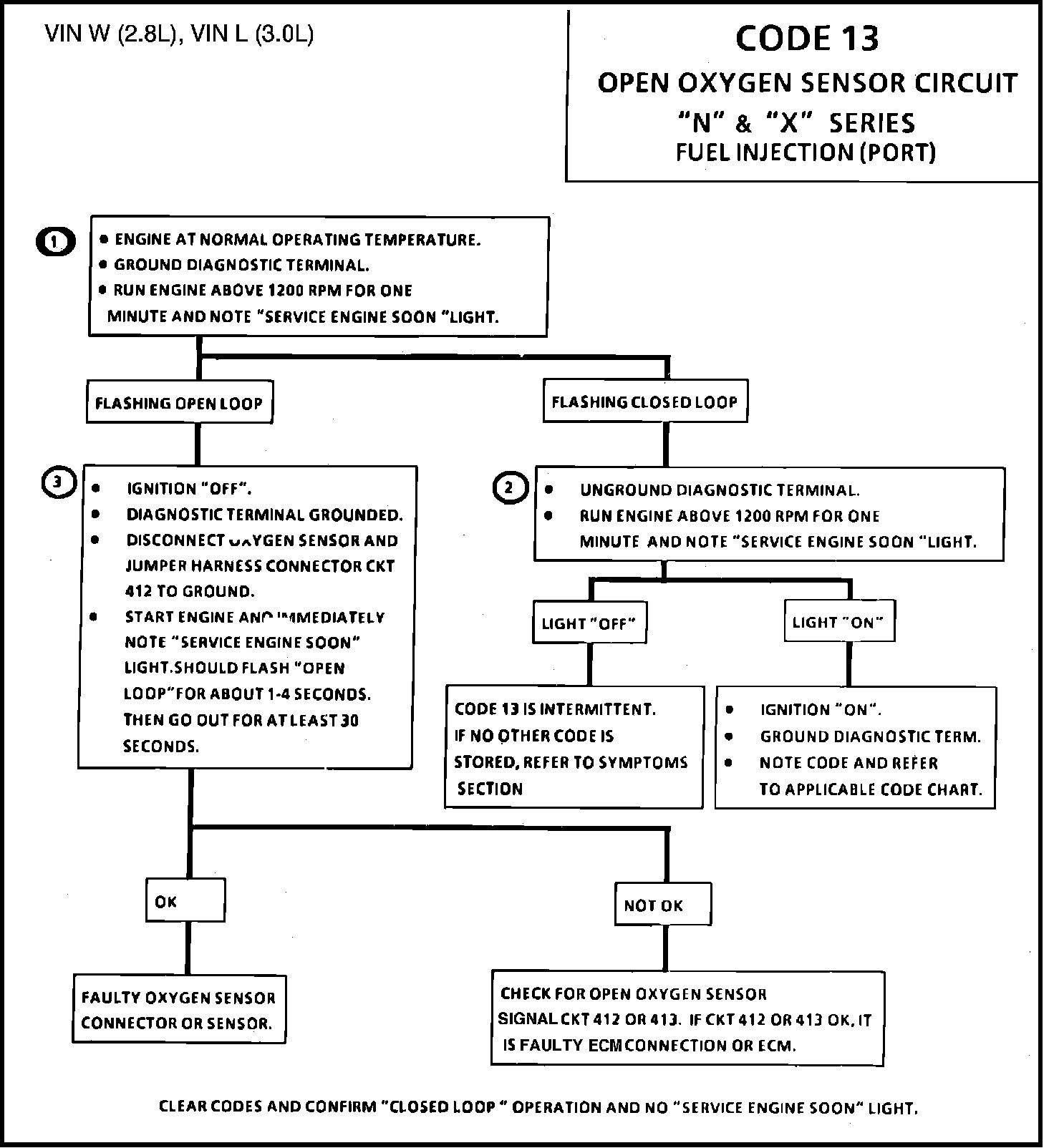 2. This step verifies no additional code stored, and that stored Code 13 is intermittent.