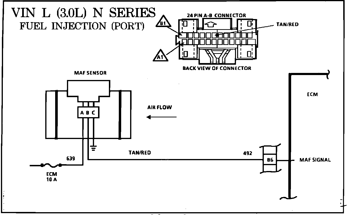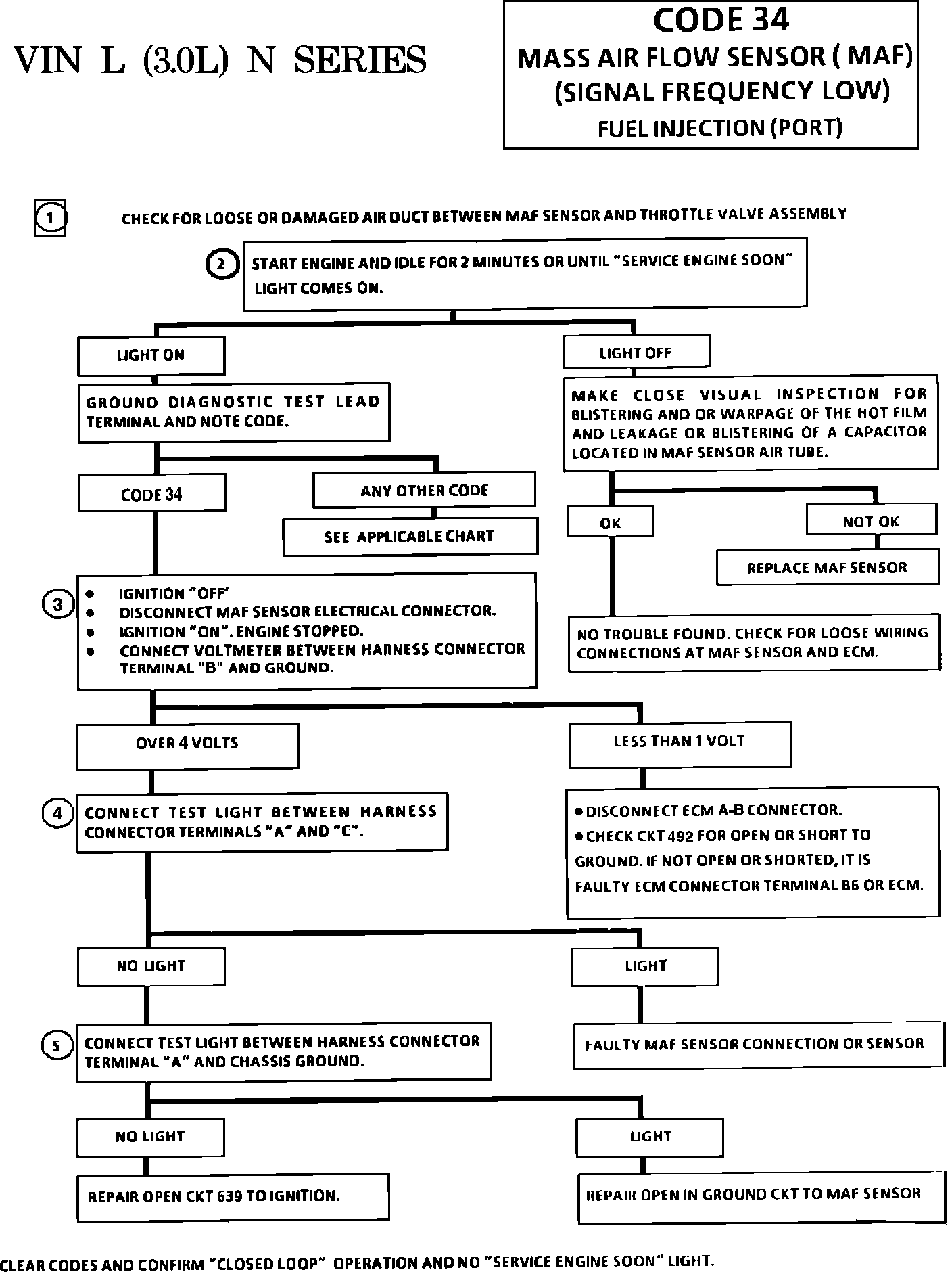 Fig. 010 - Wiring Diagram for Code 34 MAF Sensor. VIN L: