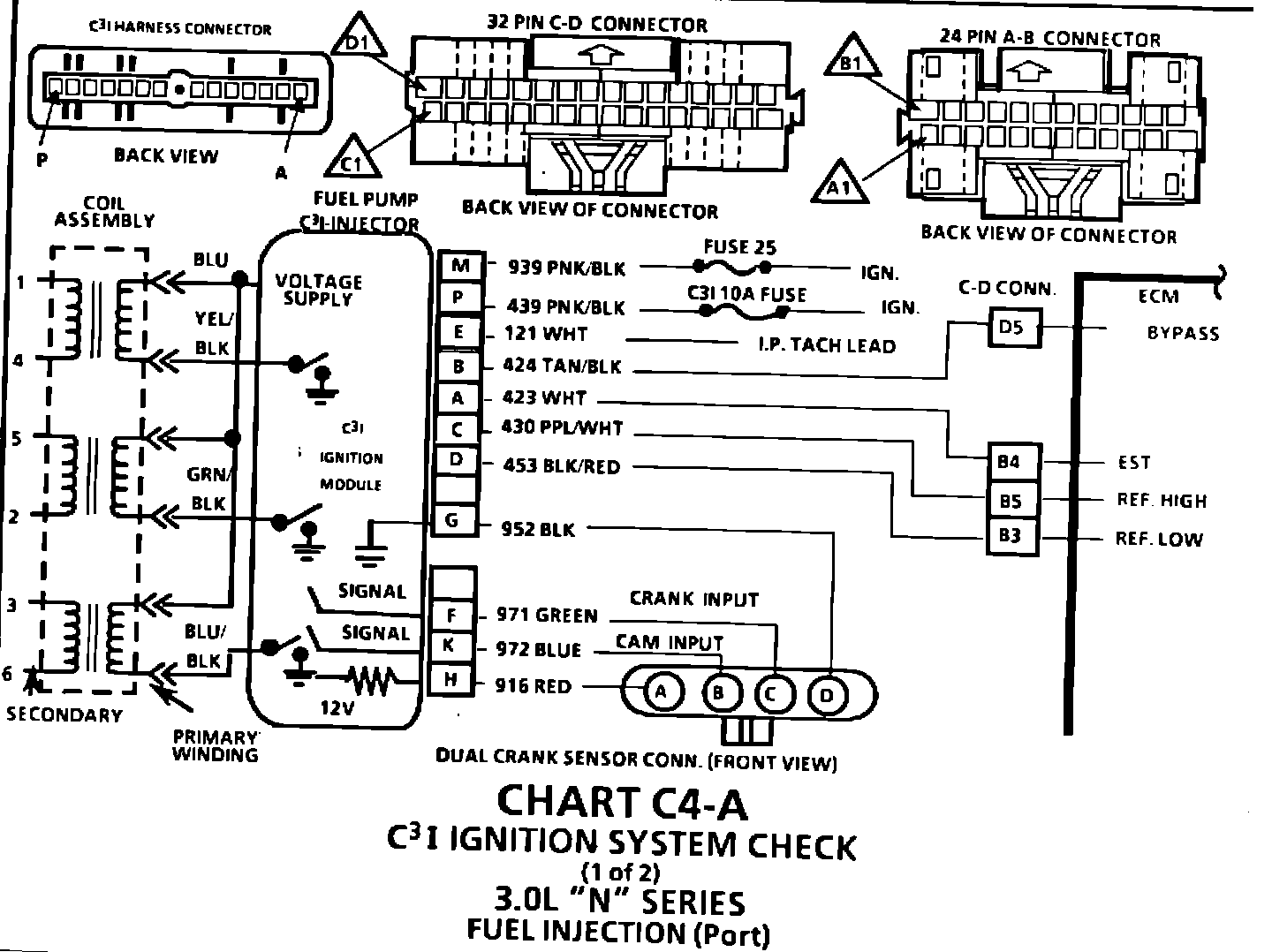 The C(3)I Ignition System Check Chart C4-A wiring diagram has been revised to include additional wire coding information. See Figure 1.. Please update page 6E3-220 of your 1985 Firenza, Calais, Cutlass Ciera and Ninety-Eight Chassis Service Manual, Volume II with this information.
