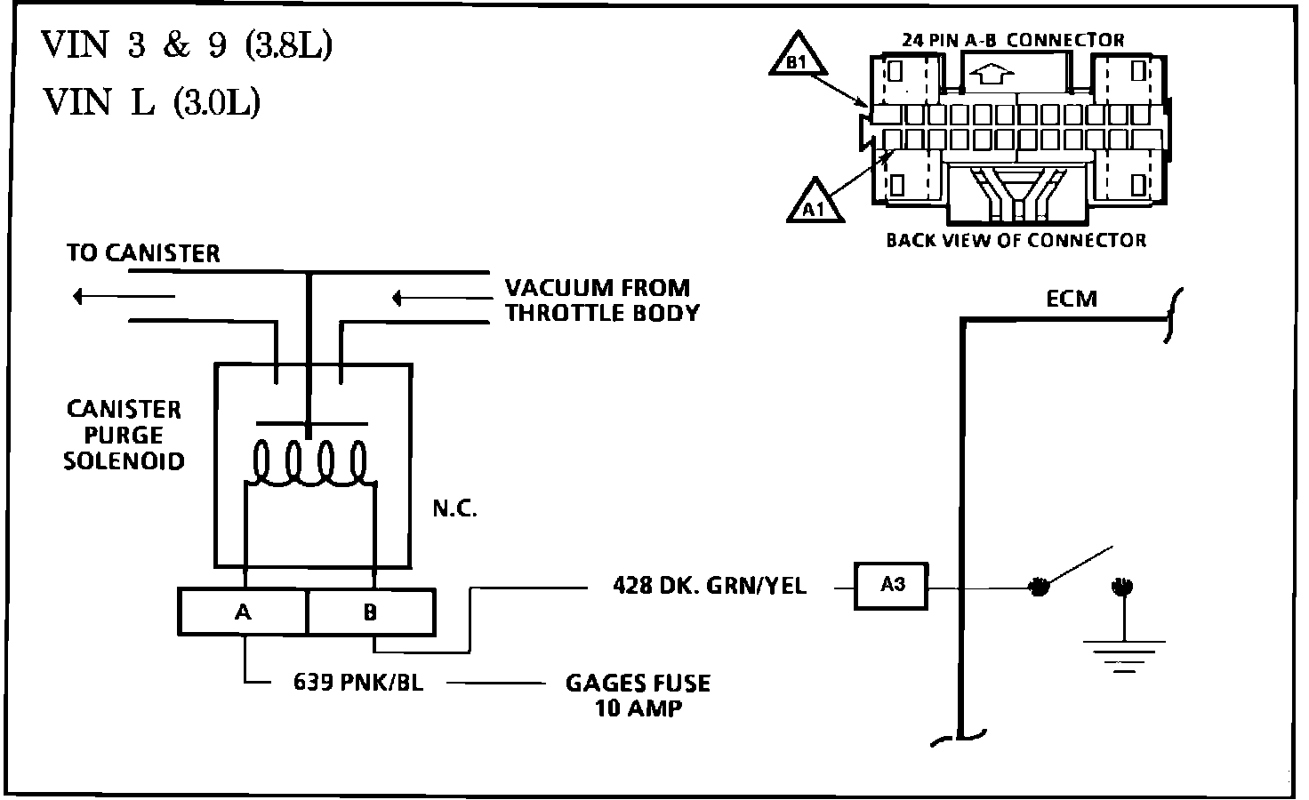 Fig. 007 - WIRING DIAGRAM for Chart C-3 Canister Purge Valve. VIN 3, VIN 9, VIN L: