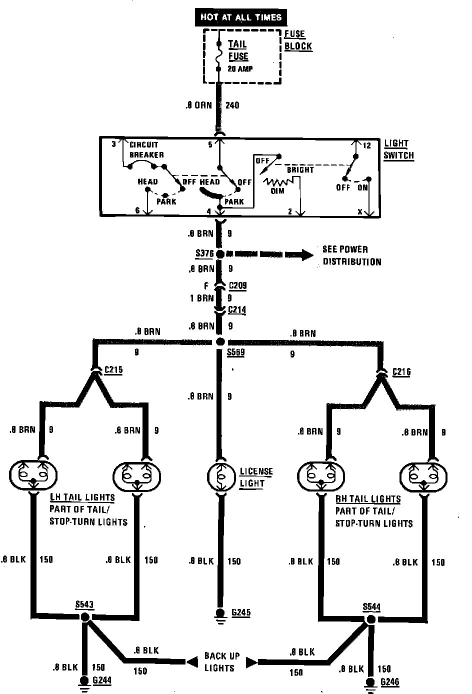 License, Rear Marker & Tail Lamp Wiring Circuit: