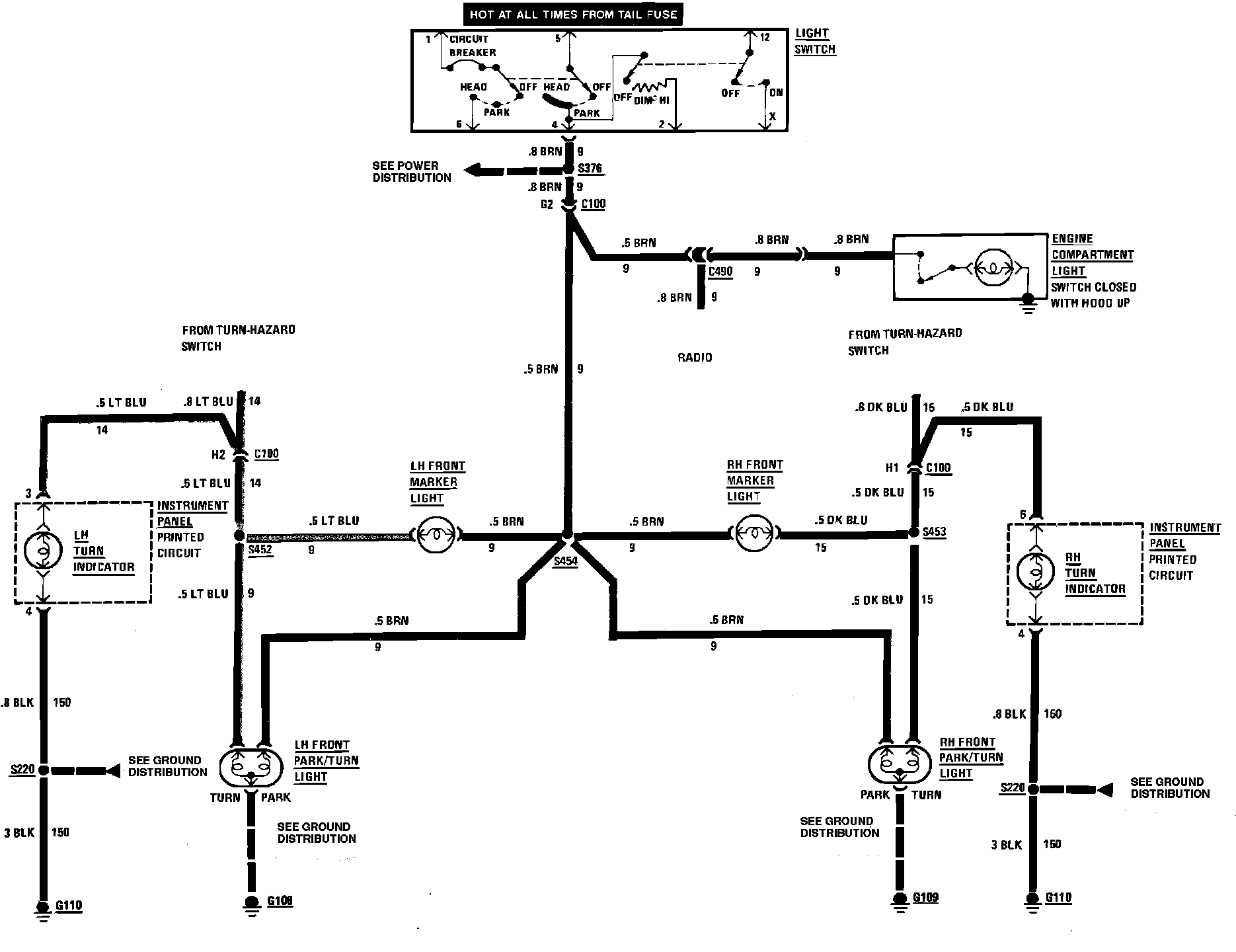 Front Marker, Front Park, Engine compartment & Turn Lamp Wiring Circuit: