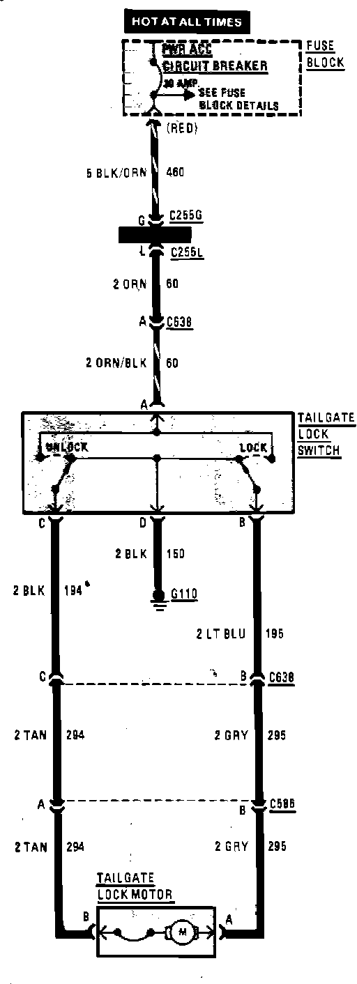 Tailgate Power Lock Wiring Circuit: