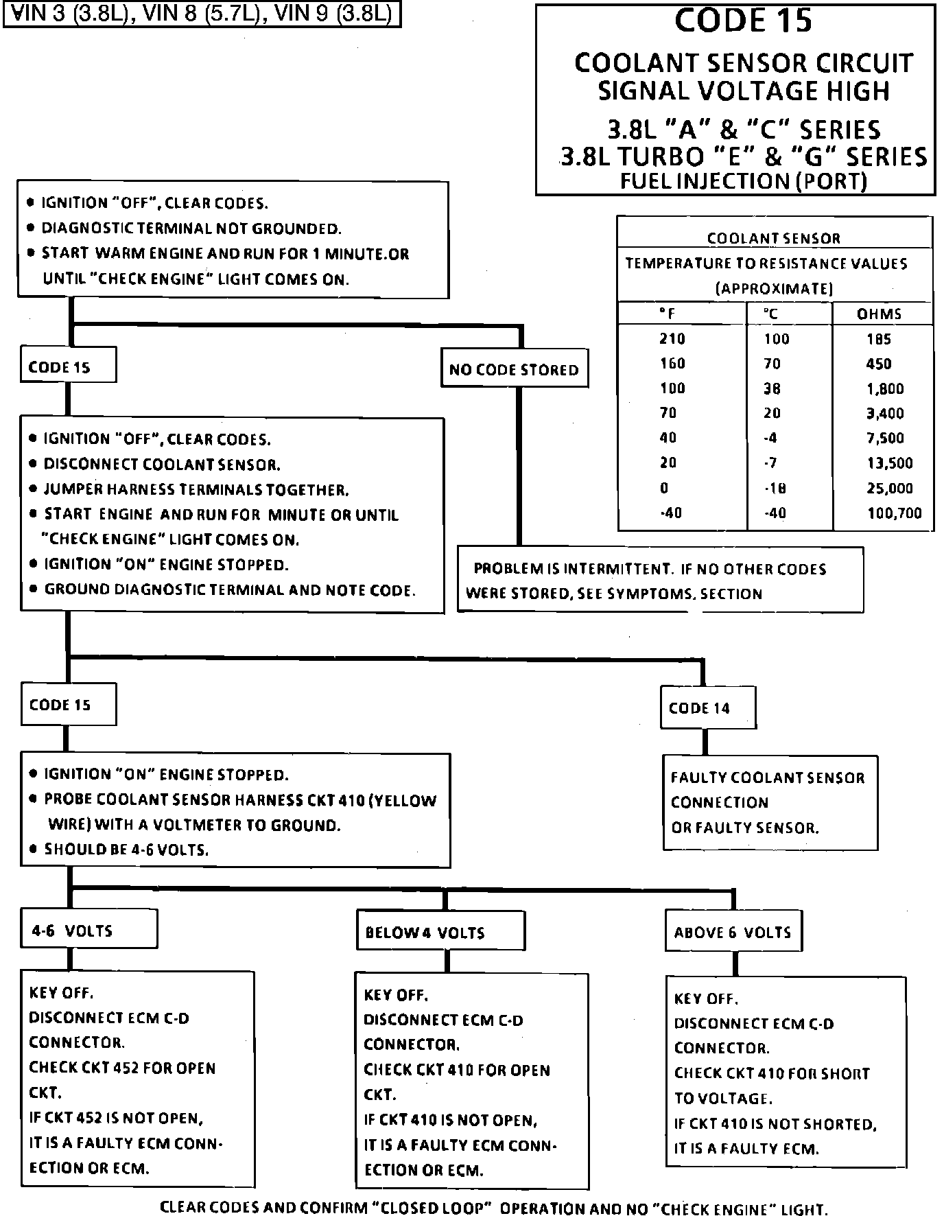 Fig. 041 - WIRING DIAGRAM for Code 15 Coolant Sensor Circuit (Signal Voltage High). VIN 3, VIN 9: