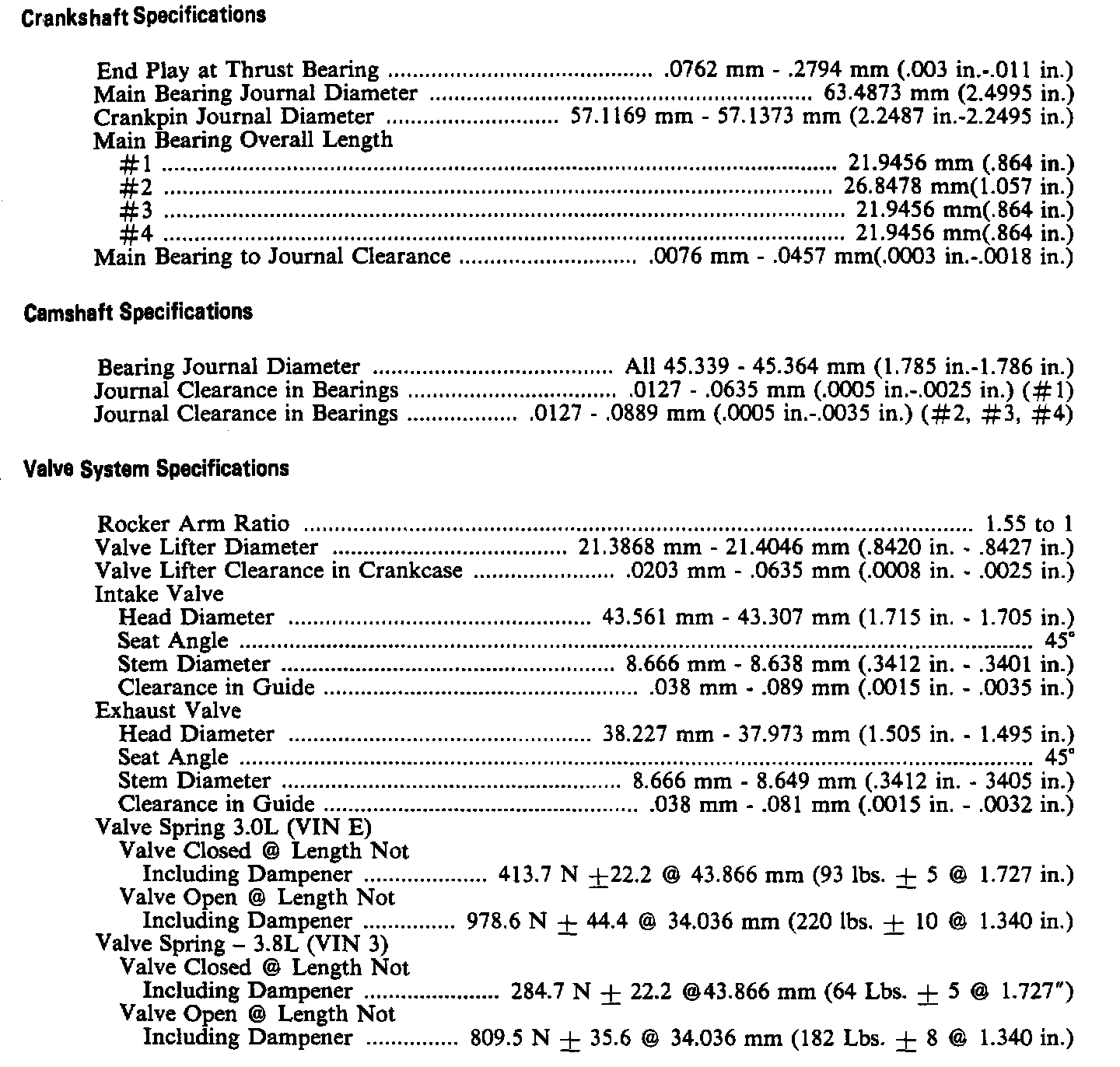 Continued Engine Specifications: