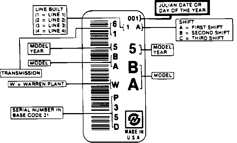FIGURE 1 - THM 440-T4 TRANSAXLE I.D. NAMEPLATE: