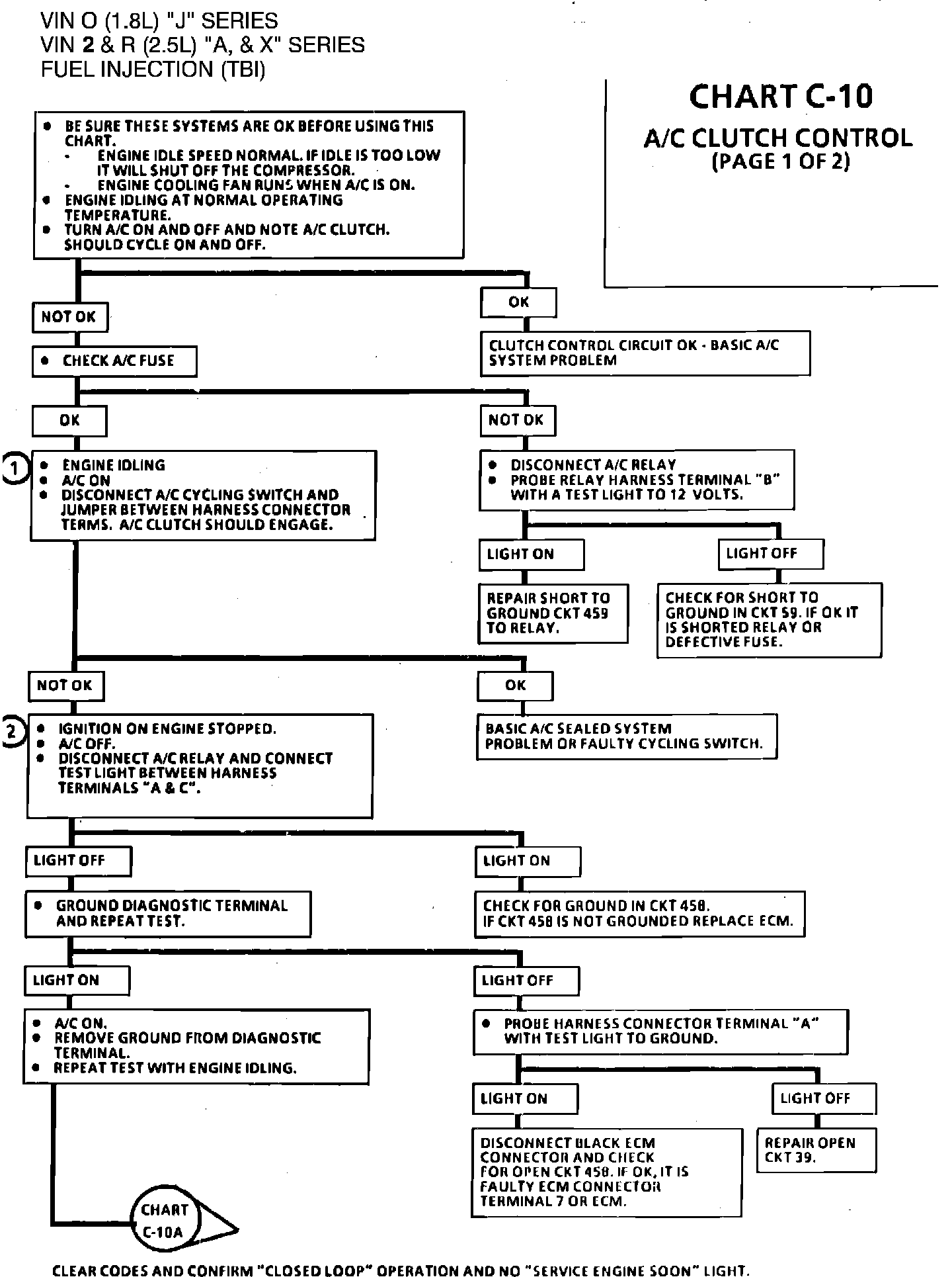 Fig. 019 - Wiring Diagram for Chart C-10 A/C Clutch Control. VIN 0, VIN 2, VIN R: