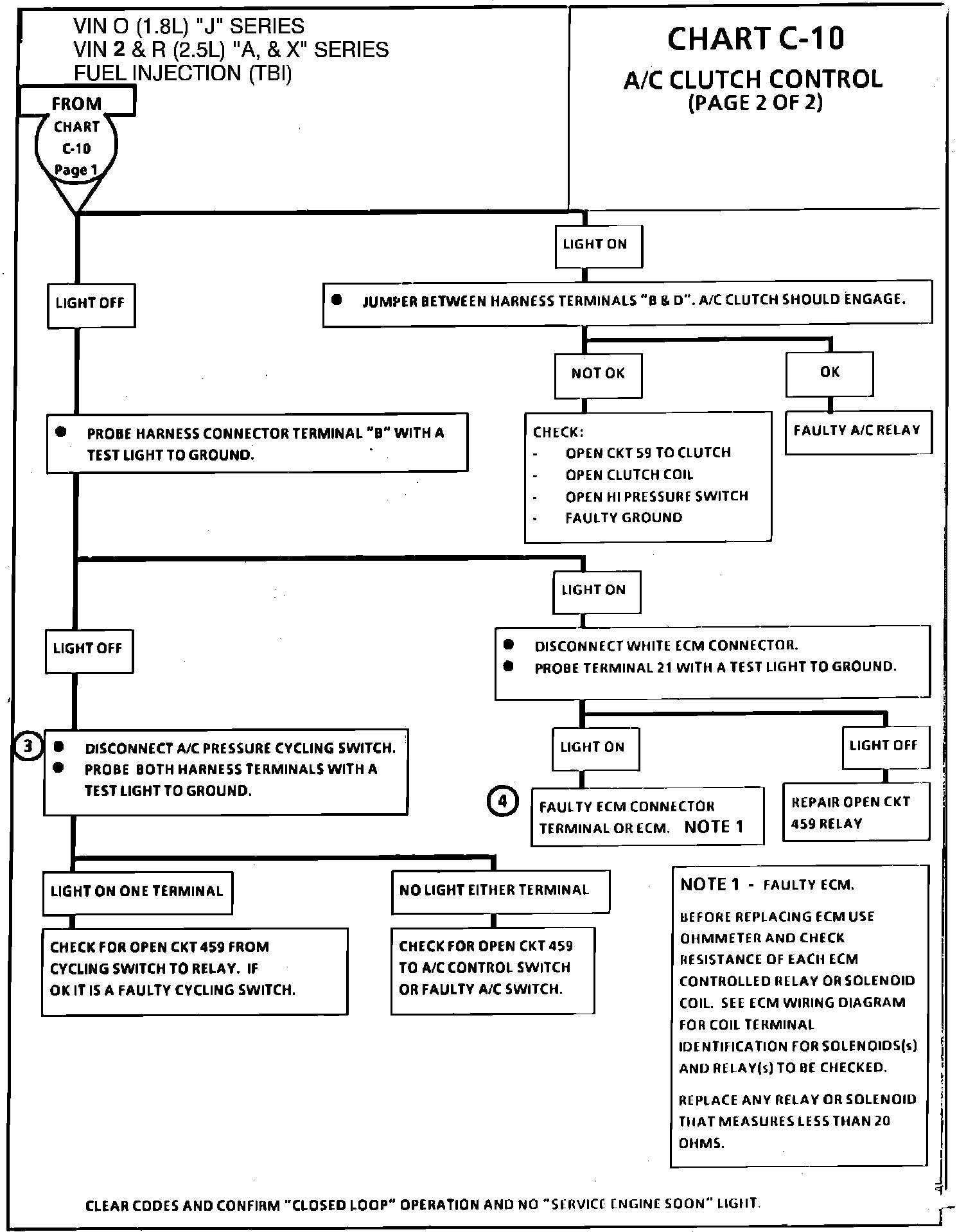 Solenoid and relay coil resistance must measure more than 20 ohms. Less resistance will cause early failure of the ECM "driver". Using an ohmmeter, check the coil resistance of the A/C relay before replacing the ECM.