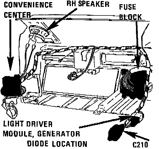 The Light Driver Module is taped to I/P harness, behind RH side of I/P.