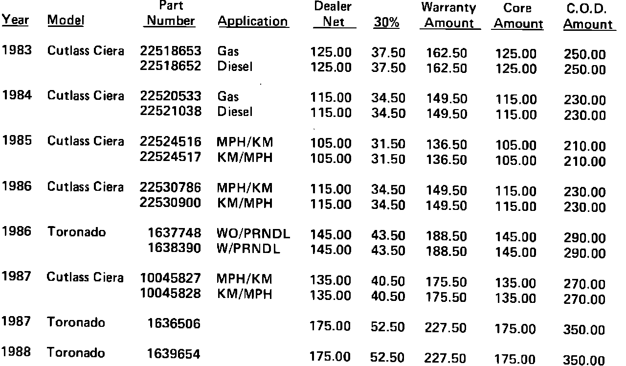 Service procedures for obtaining repairs to the digital electronic instrument cluster used in the 1983 through 1987 Cutlass Ciera and the 1986 through 1988 Toronado have been revised to the instructions listed in this bulletin effective immediately. The previous Dealer Management Bulletins 83-1-16, 84-1-10, 85-1-9, 86-1-8B, and 87-1-1 should be updated to reflect these changes.