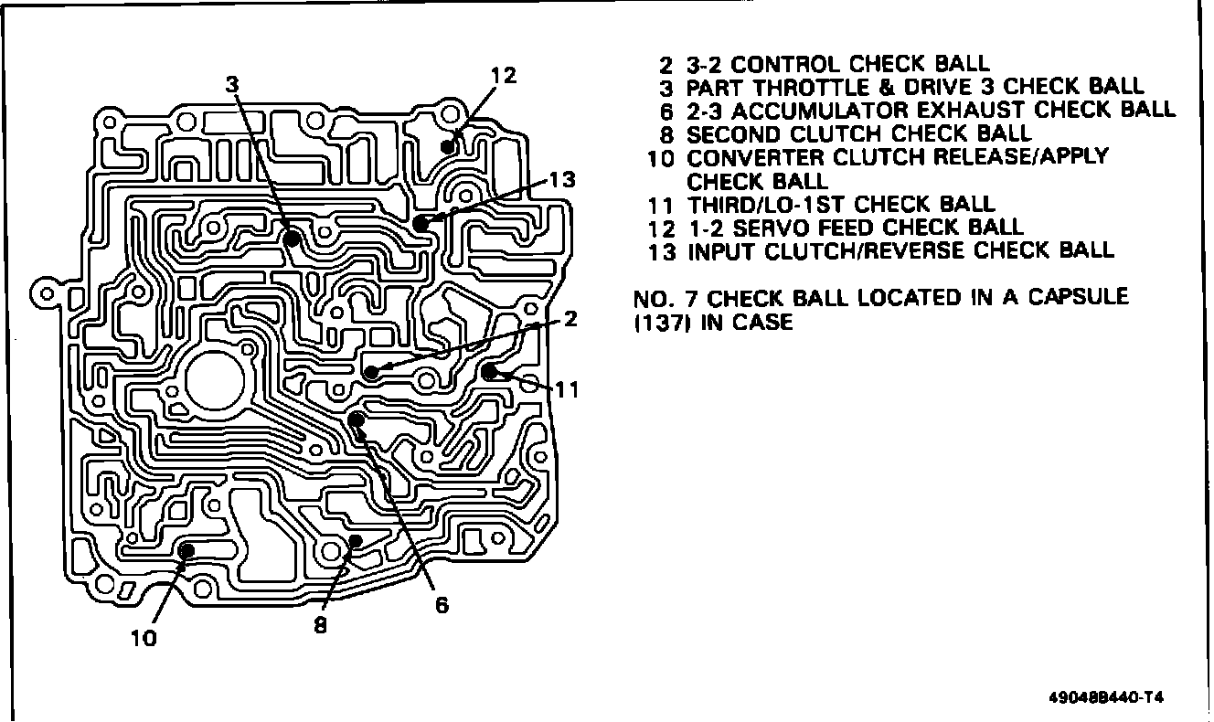 A very harsh part throttle 3-2 shift at 20-40 mph may be caused by a missing or mislocated No. 2 3-2 control checkball (Figure 2). Remove the valve body to inspect for proper checkball location or damage to the spacer plate. A mislocated checkball may have bent the spacer plate. Also inspect the No. 12 1-2 servo feed checkball to insure it is seating properly.