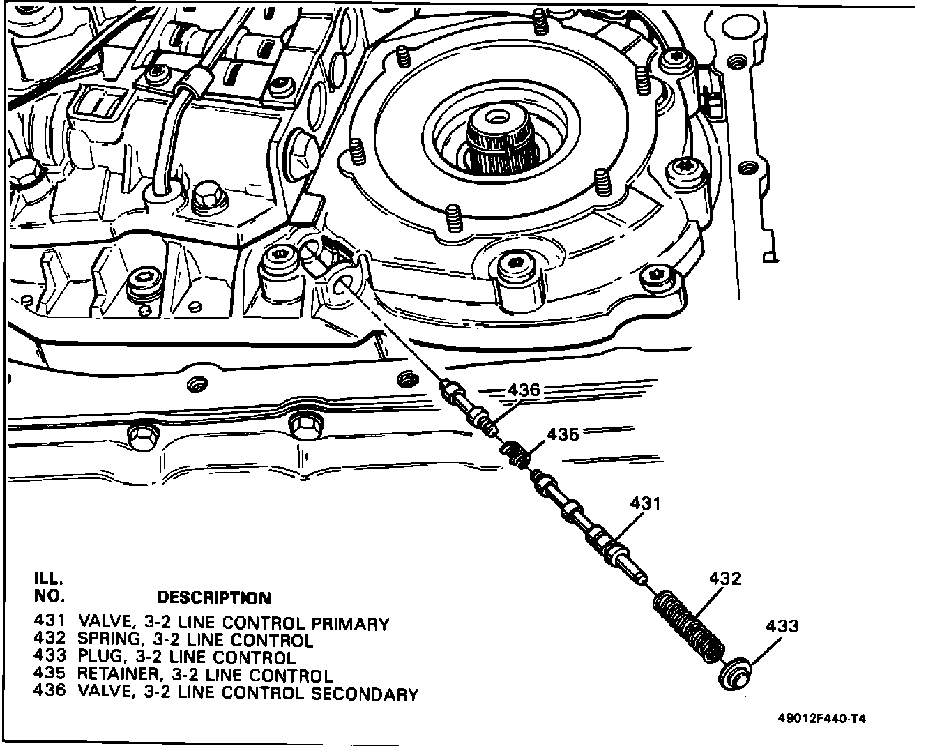 An intermittent harsh 3-2 shift may be caused by a broken 3-2 line control retainer (Item 435, Figure 4). Remove the transaxle side cover to access the 3-2 line control valve, and if necessary, replace a broken retainer with the part listed below. Also ensure that the 3-2 line control valve moves freely in its bore.