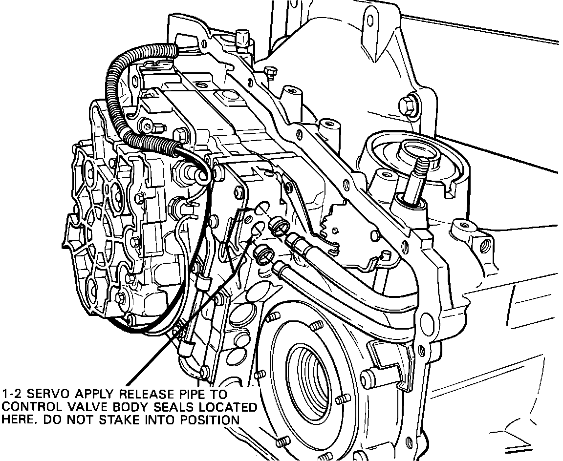 Seals are included at both ends of the apply and release pipes (refer to Figures 2 and 3) and on the servo piston. A damaged seal in any position may affect operation of the servo. A leaking apply pipe circuit may cause delayed forward engagement and slipping on takeoff when in first or second gear. A leak in the release pipe circuit may cause a 2-3 upshift bump or shudder. A 1-2 servo piston leak may case any/all of the condition(s).