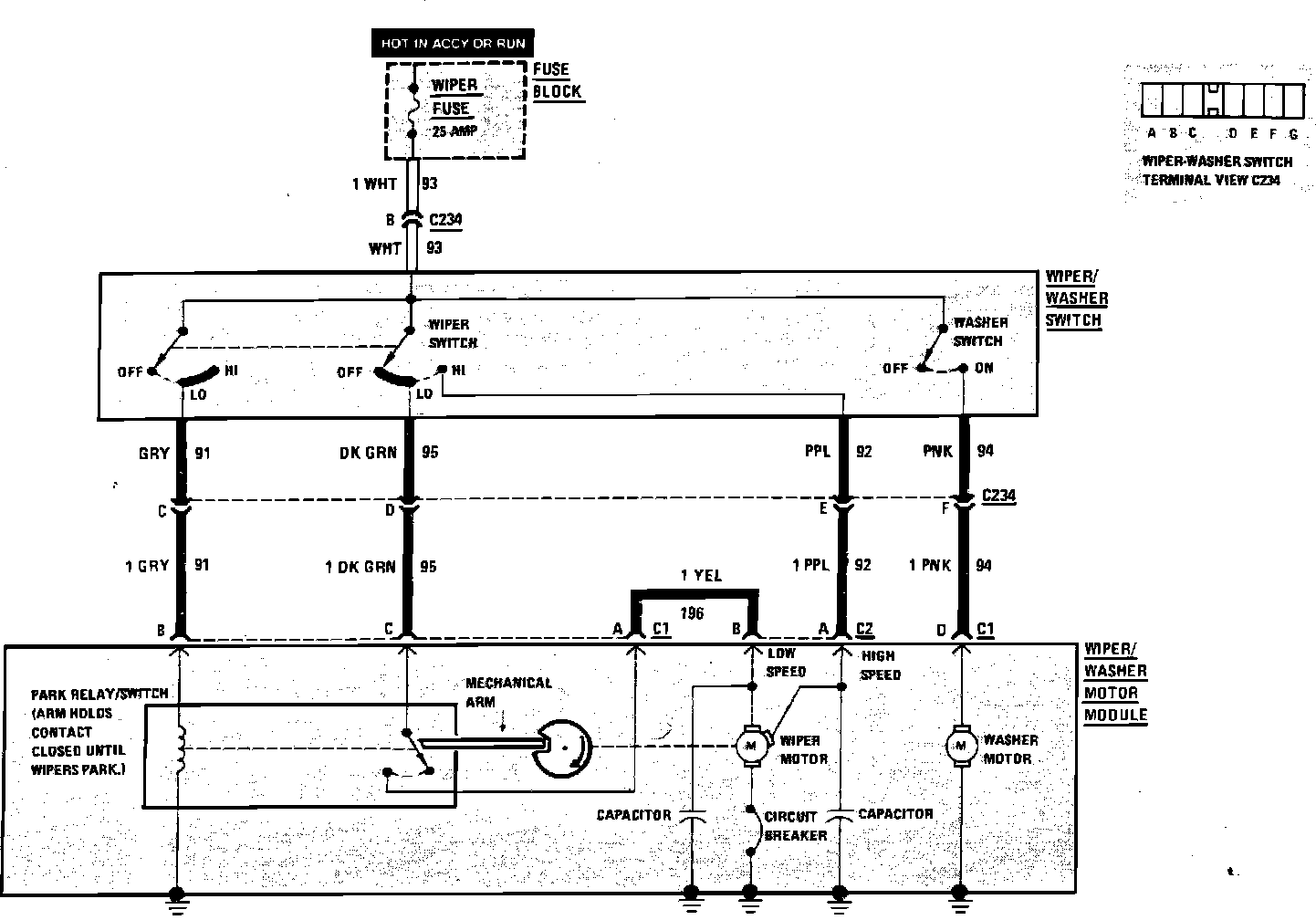 Fig. 278 Windshield Wiper/Washer Wiring Circuit - Less Pulse: