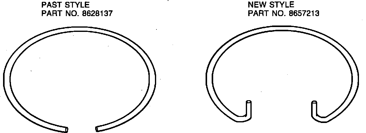 The past style servo cover retaining ring part number 8628137 (without tangs), can only be used with the past style (with notches) case intermediate servo bore. The new servo cover retaining ring part number 8657213 (with tangs), can be used with either style case intermediate servo bore.
