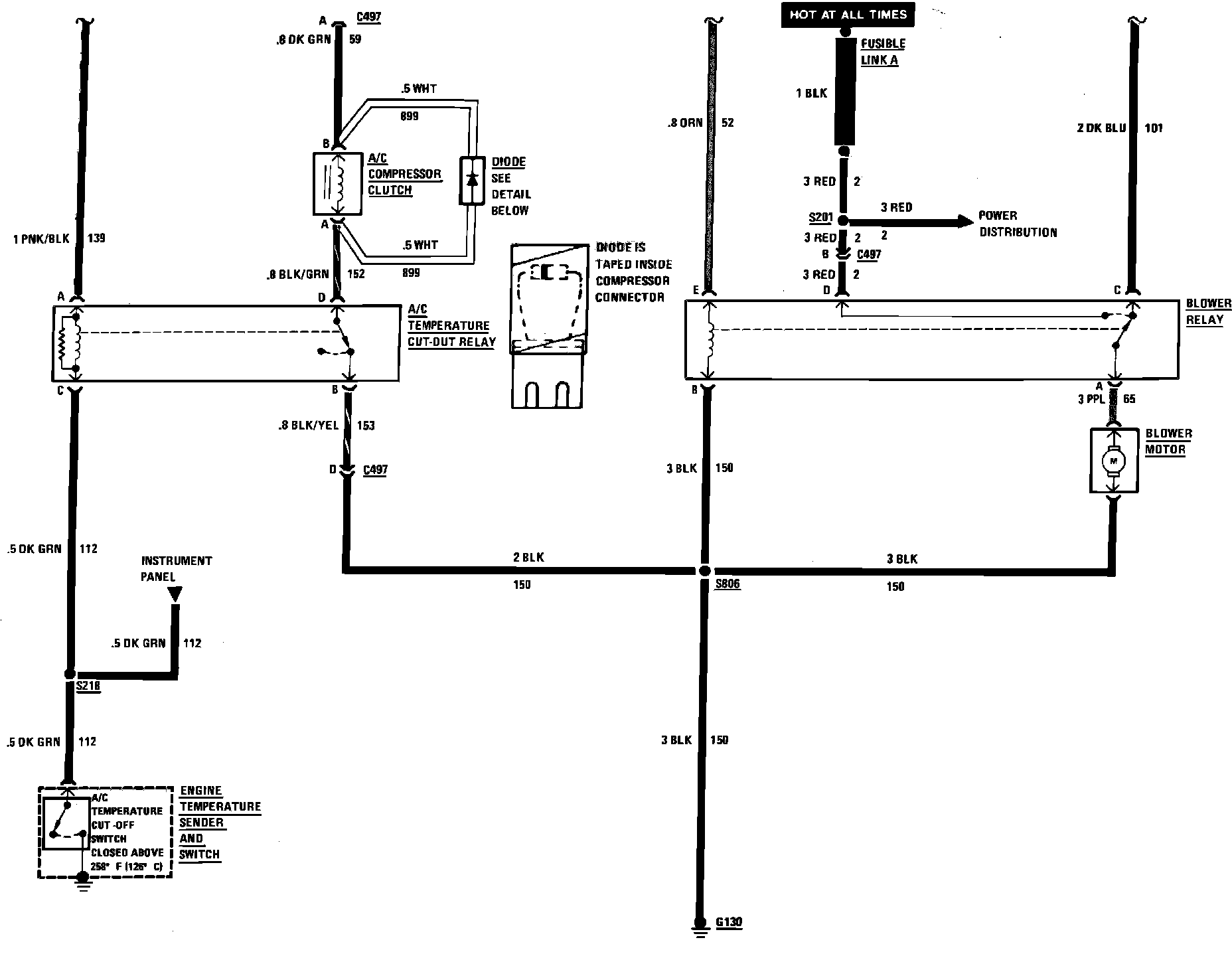 Air Conditioning Blower & Compressor Control Wiring Circuit: