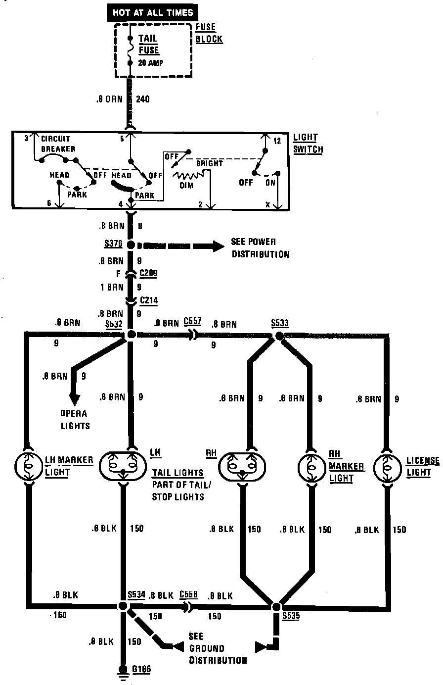 License, Rear Marker & Tail Lamp Wiring Circuit: