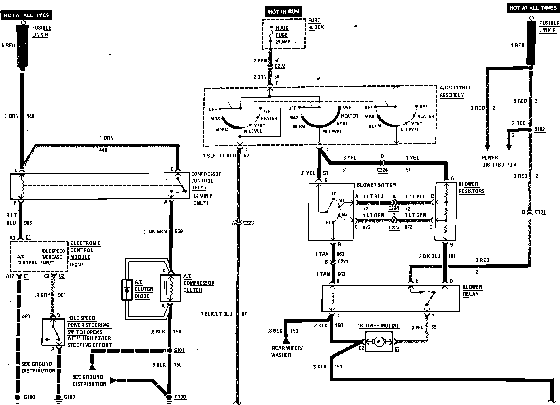 A/C Blower & Compressor Control Wiring Circuit