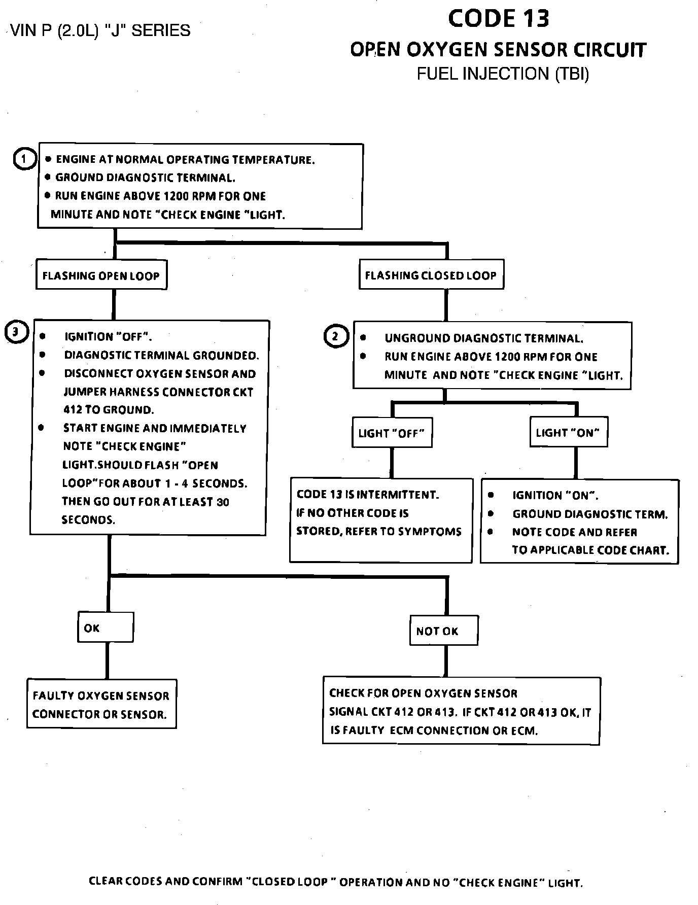 2. This step verifies no additional code stored, and that stored Code 13 is intermittent. See DIAGNOSIS BY SYMPTOM.