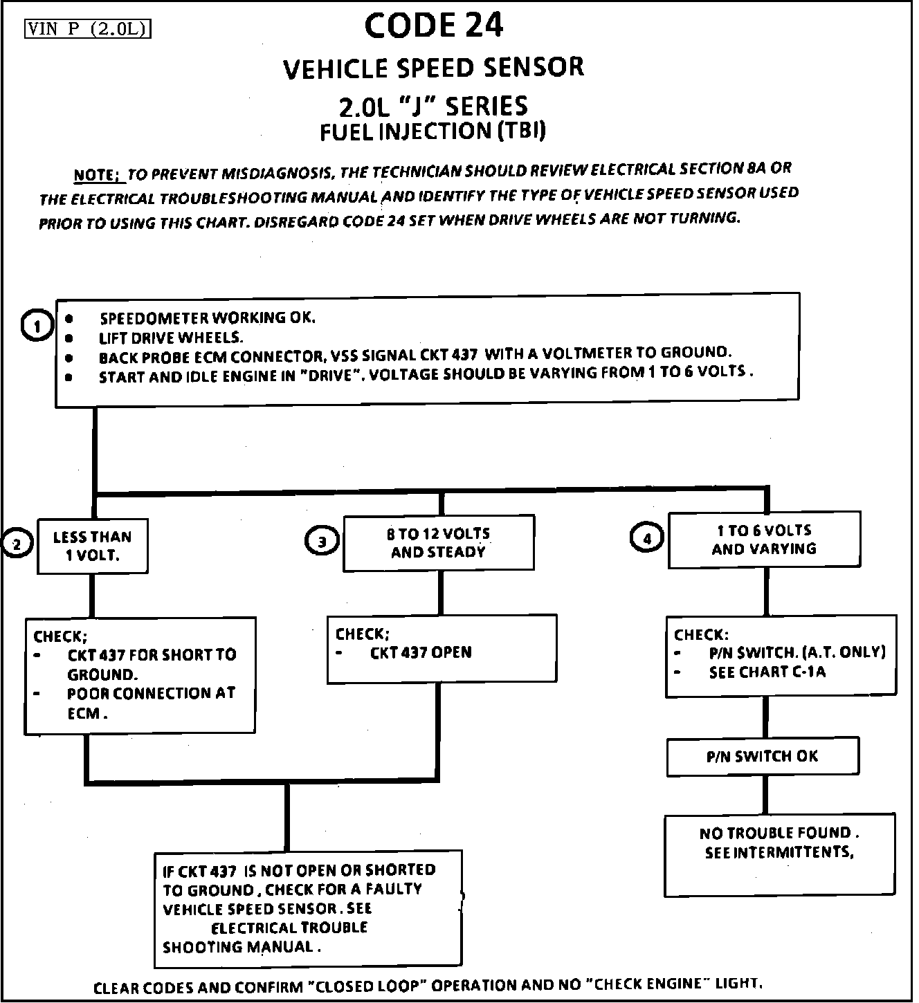 To prevent misdiagnosis, the technician should review Electrical Wiring Diagrams and identify the type of Vehicle Speed Sensor used prior to using this chart. Disregard a Code 24 set when drive wheels are not turning.