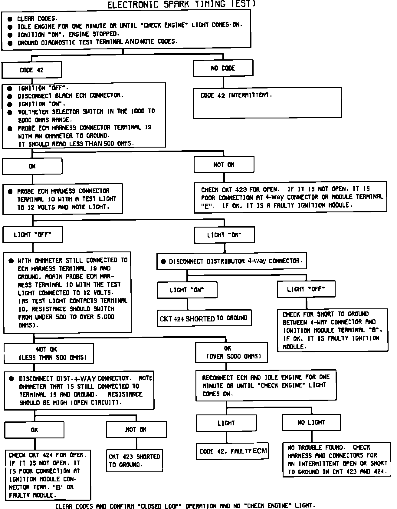 Fig. 5d Code 42 chart (Part 4 of 9). 1984-86 4 cyl. models w/throttle body fuel injection (TBI) & 1984-86 4-110/1.8L turbocharged w/port injection (use this chart with HEI-EST ignition system diagnostic charts):